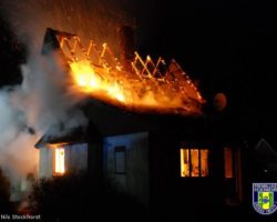 Nachbarn bemerkten gegen fünf Uhr in der Frühe das Feuer, das zu diesem Zeitpunkt aber wohl schon länger in dem Gebäude gewütet haben muss: Beim Eintreffen der ersten Feuerwehrfahrzeug brannte das Haus jedenfalls bereits in voller Ausdehnung. Meterhoch schlugen die Flammen aus dem Dach, der beißende Rauch war auch in deutlicher Entfernung von der Brandstelle schon zu riechen.