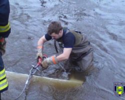 Nach dem Einsatz "Feuer_BMA" Antonius Krankenhaus informierte eine Streifenwagenbesatzung der Polizeiwache Gronau anwesende Feuerwehrkameraden am Gerätehaus Epe über den Fund eines Tresores in der Dinkel. Ein Folgeeinsatz "Hilfeleistung" wurde eröffnet. Der Tresor konnte schnell geborgen werden, und wurde, zur Sicherung des Beweismittels, durch die Feuerwehr zur Polizeiwache Gronau gebracht.