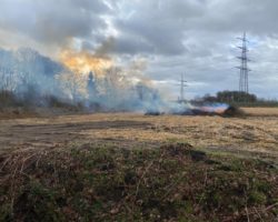 Weiterhin wurden an der Eßseite (10:11 h) und in der Bauernschaft „Füchte“ (15:34 h) Schlagabrraum verbrannt. Dieses Verbrennen von Ästen und Unterholz war jeweils durch das Ordnungsamt genehmigt worden, so dass die Feuerwehr nicht eingreifen musste.