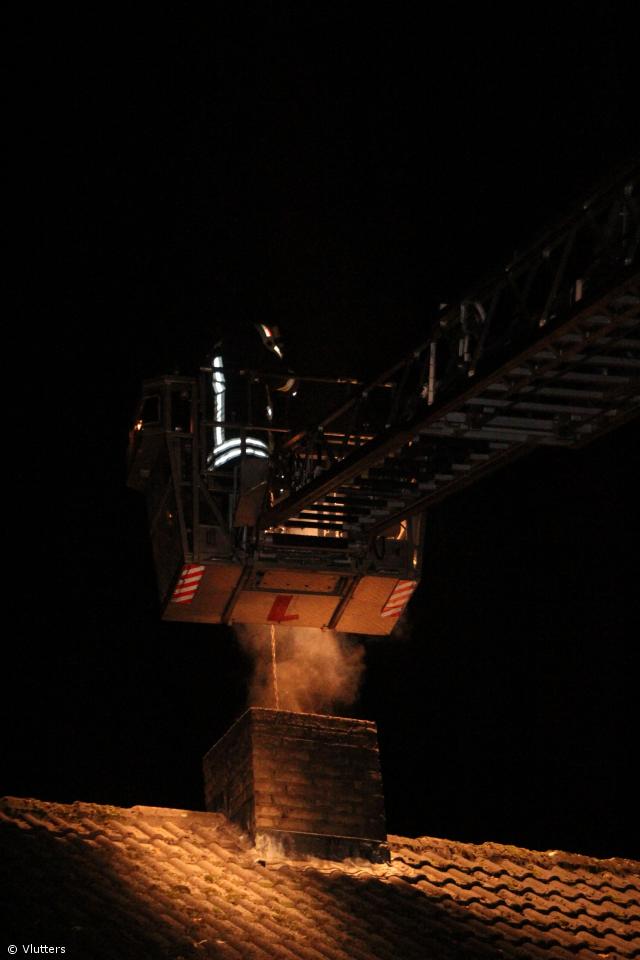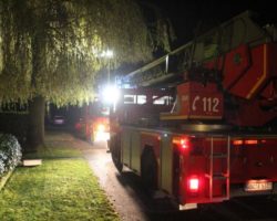 Im Kaminzug des Einfamilienhauses hatte die Russchicht Feuer gefangen. Da im oberen Teil des Kaminzuges bereits erste Risse zu sehen waren wurde die Drehleiter nachgefordert und der Kamin durch die Feuerwehr gefegt. Der Schornsteinfegermeister kontrollierte anschließend den Kaminzug nochmals und legte ihn vorübergehend still.