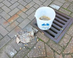 Kunststoffeimer mit Kippen sind Grund für Alarmierung Kellerbrand
