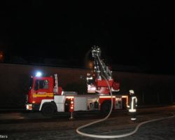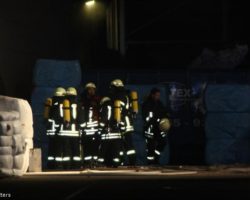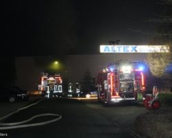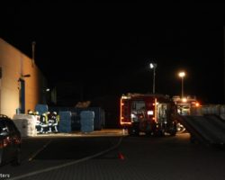 Bei einem Brand in einer Recyclingfirma im Industriegebiet Ost war eine Maschine zur Herstellung von Vlies in Brand geraten. Durch die hohe Wärmestrahlung war auch der Vlies auf dem Sheddach, (der Vlies diente als Sonnenschutz vor den Fenstern), in Brand geraten.