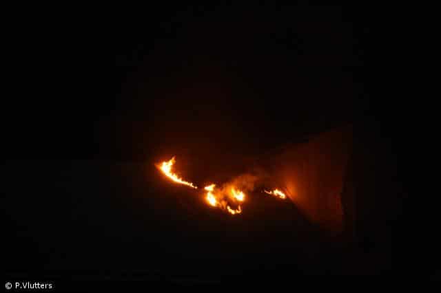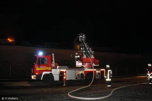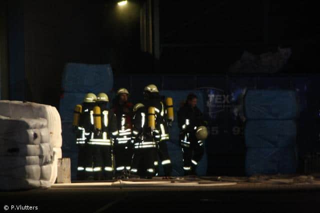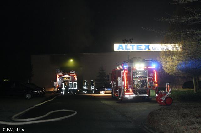 Mehrere Atemschutztrupps gingen mit C-Rohren zur Brandbekämpfung in der vollkommend verrauchten Halle vor, der Brand in der Halle konnte durch die eingesetzten Trupps schnell gelöscht werden. Über die Drehleiter wurde der Brand auf dem Sheddach gelöscht. Durch den Einsatz von mehreren Hochleitungslüftern wurden die Hallen wieder rauchfrei.