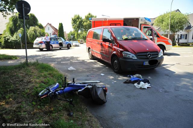 Ein niederländischer Mofafahrer befuhr gegen 14:05 h den Radweg am Heerweg in Richtung Gildehauser Straße. In Höhe des Schöttelkotter Damms wurde er von einem Kleintransporter erfasst, der den Heerweg überqueren wollte. Aufgrund der ersten Meldung wurde von der Leitstelle Borken, neben dem bodengebundenen Rettungsdienst, der Rettungshubschrauber Euro II mitalarmiert. Nach notärztlichder Versorgung wurde der verletzte Mofafahrer mit dem Rettungswagen ins Medispectrum Enschede transportiert. Der Fahrer des Kleintransporters blieb unverletzt.