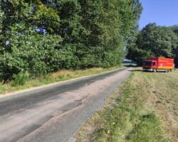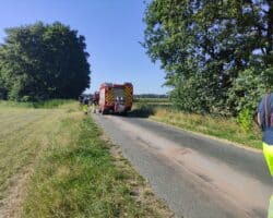 Dieser verlor auf seiner Fahrt Hydrauliköl. Auf einer Länge von ca. 2 Kilometer hatte sich das Hydrauliköl verteilt.
