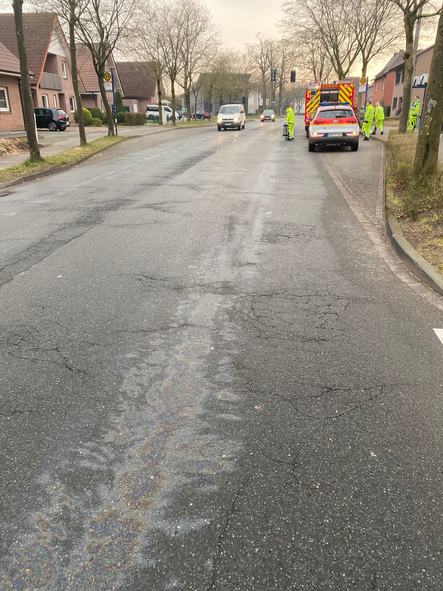 Am Sonntag, den 20.03.2022 wurde gegen 17:10 h eine Ölspur auf der Ahauser Straße gemeldet. Bei Eintreffen der Feuerwehr konnte festgestellt werden, dass sich die Kraftstoffspur auf einer Länge von ca. 2,5 Kilometern Richtung Wieferthook zog. In Absprache mit der Polizei wurden einige markante Punkte mit Ölex bearbeitet. Im Anschluss konnte die Polizei die Straße wieder frei geben.