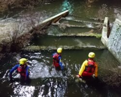 Lt. Anrufer soll im Bereich des Rock- und Popmuseums eine Person ins Wasser gesprungen sein und zwei weitere hinterher. Die Kreisleitstelle Borken alarmierte die Feuerwehr Gronau, die Taucher der Feuerwehr Rheine sowie die DLRG Ahaus. Mittels Drehleiter wurde die Einsatzstelle ausgeleuchtet und die Einsatzkräfte suchten die Dinkel im Hüfthohen Wasser nach Personen ab. Es konnte keine Person im Wasser ausfindig gemacht werden und somit wurde die Suche abgebrochen.