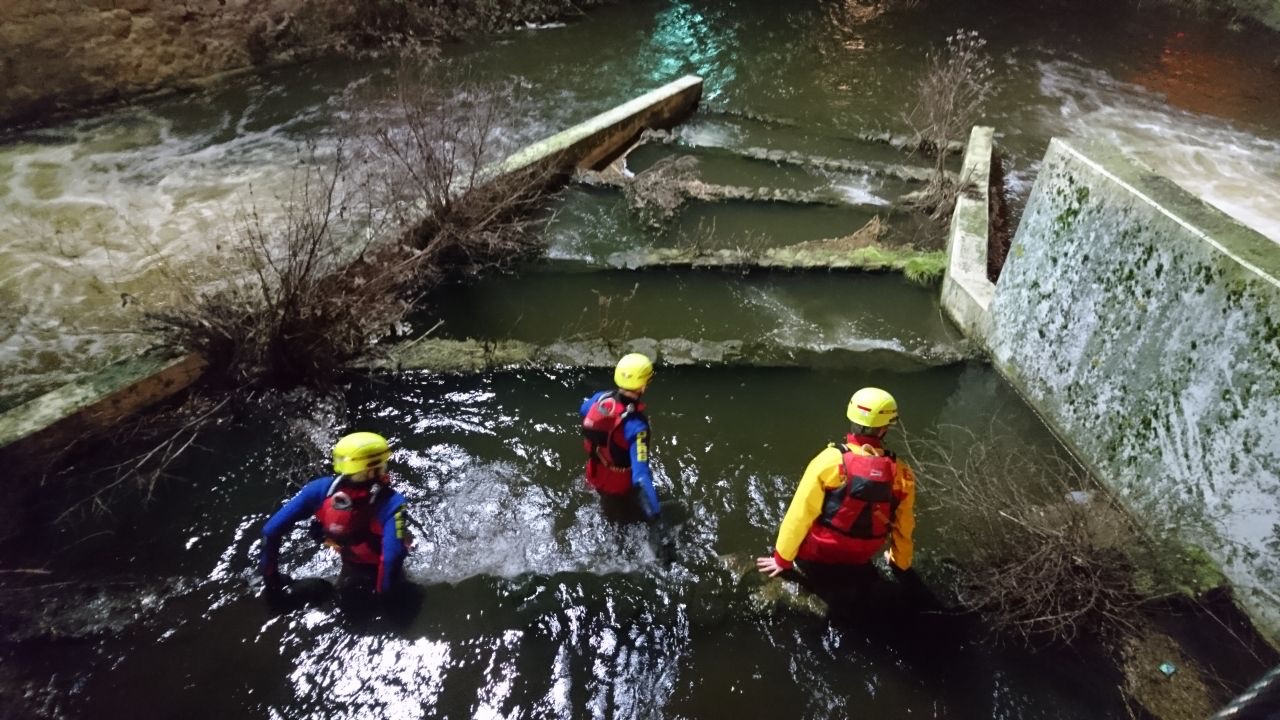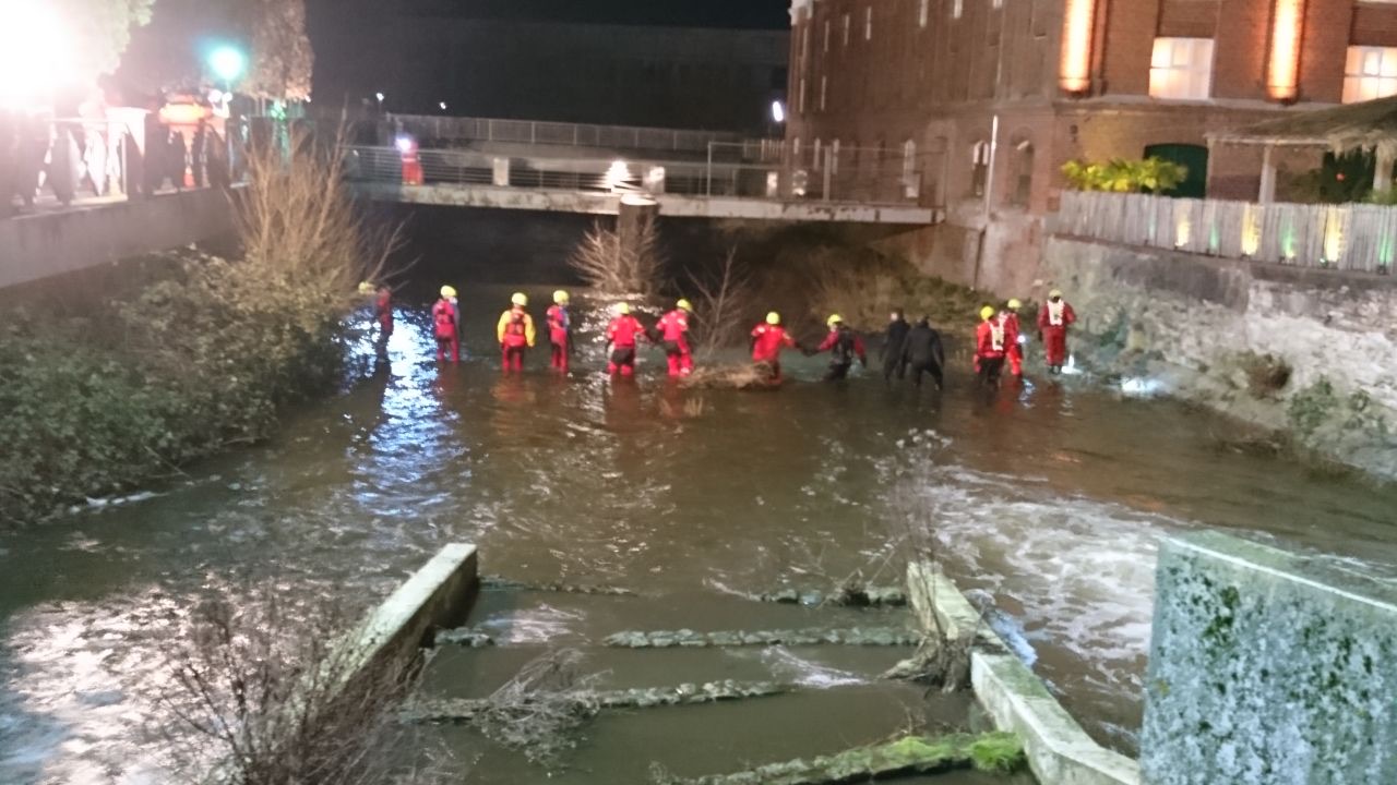 Lt. Anrufer soll im Bereich des Rock- und Popmuseums eine Person ins Wasser gesprungen sein und zwei weitere hinterher. Die Kreisleitstelle Borken alarmierte die Feuerwehr Gronau, die Taucher der Feuerwehr Rheine sowie die DLRG Ahaus. Mittels Drehleiter wurde die Einsatzstelle ausgeleuchtet und die Einsatzkräfte suchten die Dinkel im Hüfthohen Wasser nach Personen ab. Es konnte keine Person im Wasser ausfindig gemacht werden und somit wurde die Suche abgebrochen.