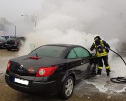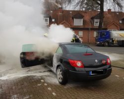 Zu einem Fahrzeugbrand ist die Gronauer Feuerwehr am Donnerstag gegen 9 Uhr an die Ochtruper Straße gerufen worden. Auf dem Firmenparkplatz eines Autohandels schlugen Flammen aus dem Motorraum eines Renault Megane.