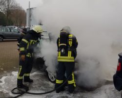 Einsatz für die Feuerwehr in Gronau: Am Donnerstagmorgen geriet ein Wagen auf einem Parkplatz eines Autohändlers in Brand. Die Polizei geht von einer technischen Ursache aus.