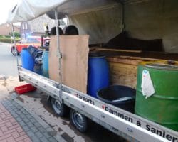 Verschiedene Ämter und Behörden waren mittlerweile vor Ort um ein weiteres Vorgehen abzusprechen. Letztendlich wurde eine Fachfirma beauftragt, die den Stoff abpumpt und entsorgt.