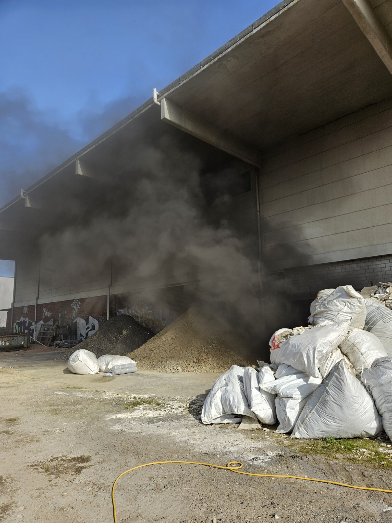 Bereits auf der Anfahrt war eine deutliche Rauchentwicklung sichtbar. Bei der ersten Erkundung durch die Einsatzkräfte stellte sich heraus, dass die betroffene Halle vollständig verraucht war. Aufgrund der starken Verrauchung herrschte im Inneren der Halle Nullsicht. Zudem lagen zunächst keine Informationen über eventuell gelagerte Waren oder mögliche Gefahrenstoffe in der Halle vor.