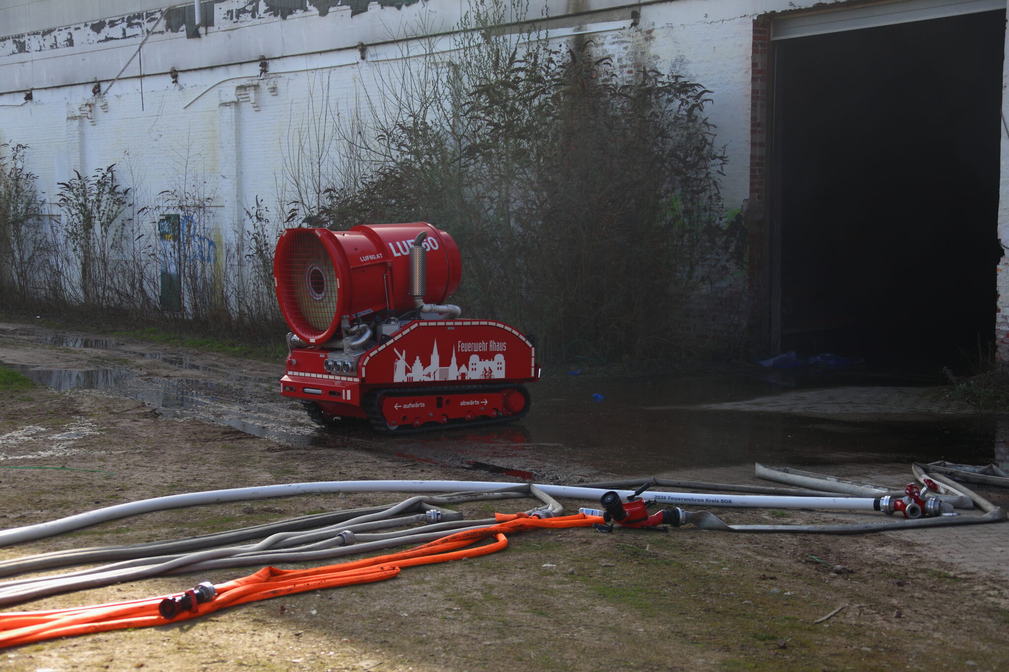 Im weiteren Einsatzverlauf wurde zudem die Feuerwehr Ahaus mit ihrem Spezialgerät LUF (Löschunterstützungsfahrzeug) nachalarmiert. Das Fahrzeug wurde eingesetzt, um das Gebäude effektiv zu belüften und den Rauch aus der Halle zu drücken.