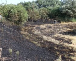 Durch den Einsatz von 3 C-Rohren wurde das Feuer gelöscht, bevor es auf die angrenzenden Bäume und Flächen übergreifen konnte.