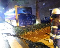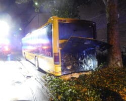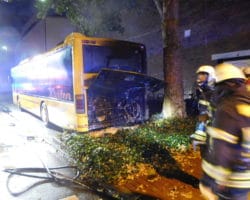 PKW Brände gibt es häufiger, aber das ein Bus brennt, ist doch eher selten. Als die Feuerwehr Gronau gegen 06:45 h alarmiert wurde, stand das gesamte Heck eines Schulbusses in Flammen. Das Fahrzeug war auf der Konrad-Adenauer Straße, Höhe Herti, geparkt worden. Die Feuerwehr löschte den Brand unter Atemschutz mit einem Schaumrohr. Da der gesamte Innenraum voller Brandrauch war, wurde der Hochleistungslüfter eingesetzt.