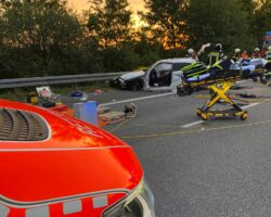 Bei dem Unfall kam es zu 3 schwerverletzten Personen und 1 lebensgefährlich verletzten Person.