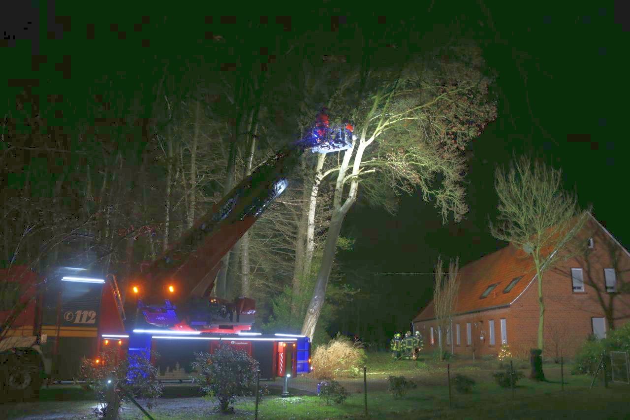 Ein ca. 8 Meter hoher Baum drohte auf ein Haus in der Bauernschaft „Am Berge“ zu stürzen. Das Wurzelwerk war durch den langanhaltenden Regen stark aufgeweicht. Der Baum wurde von der Feuerwehr Gronau entastet und bis auf 4 Meter runtergeschnitten. Somit war die Gefahr gebannt.