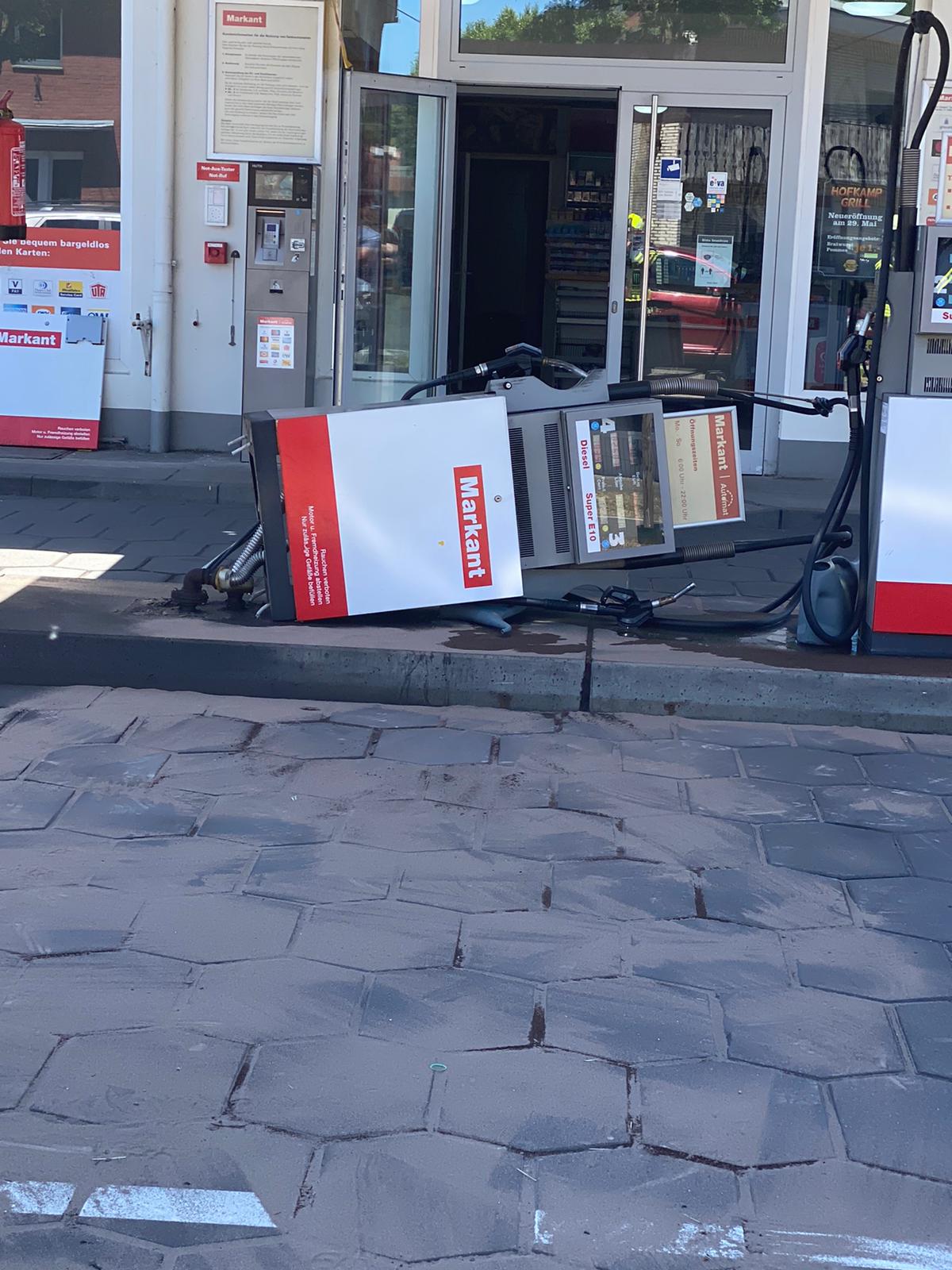 Es gibt Abläufe im Leben, die macht jeder von uns „im Schlaf“. Aber dennoch passieren Fehler bei alltäglichen Dingen, die vermutlich durch Unaufmerksamkeit ausgelöst werden. So bestimmt auch am Pfingstmontag als eine PKW Fahrerin an der Tankstelle „Nienborger Straße“ tankte. Statt nach dem Tanken, die Zapfpistole aus dem Tankstutzen zu nehmen, blieb diese im Fahrzeug. Da der PKW anschließend bewegt wurde, riß die gesamte Zapfsäule aus der Verankerung. Die Sicherheitseinrichtungen, die ein unkontrolliertes Auslaufen des Kraftstoffes verhindern, haben sofort gegriffen. Somit ist nur eine kleinere Menge an Kraftstoff ausgelaufen.