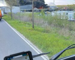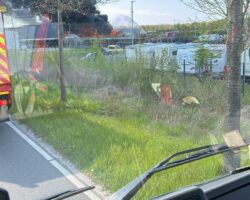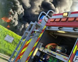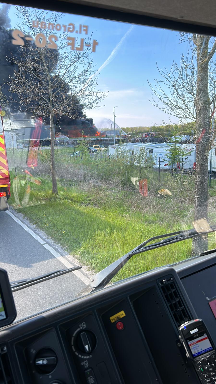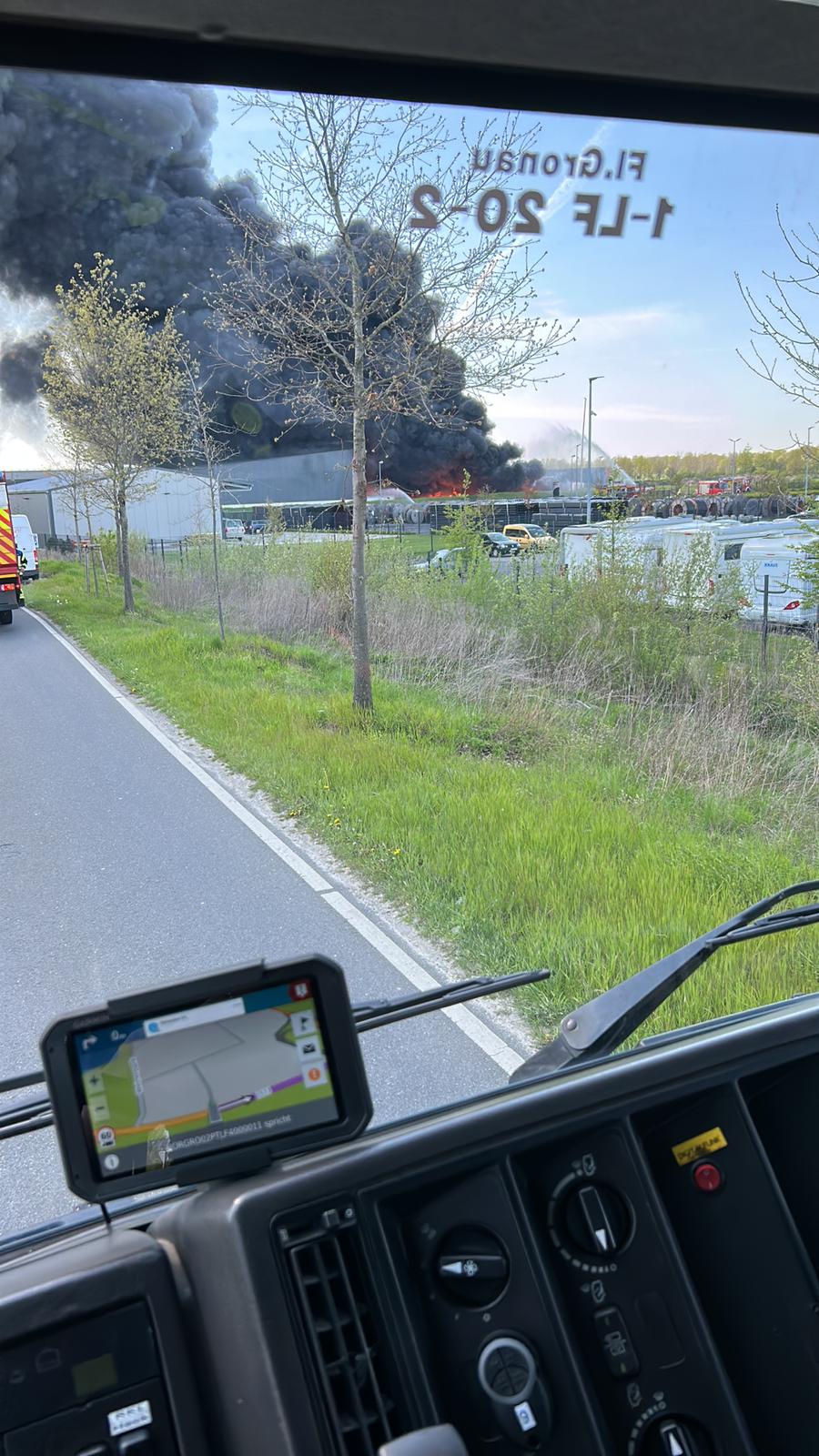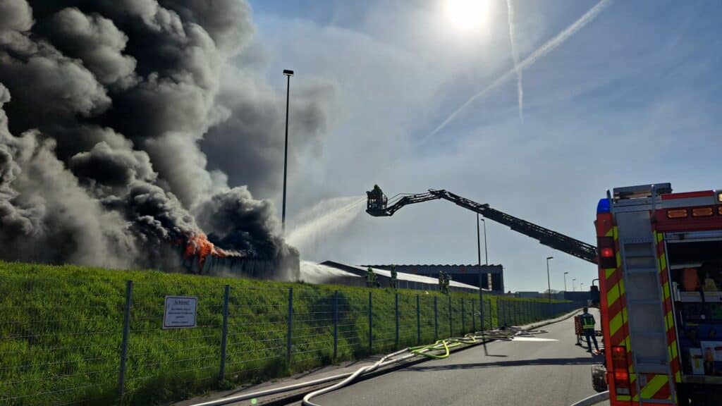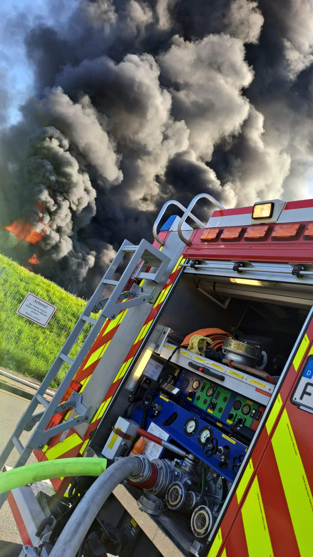 Hier brennt ein Recyclingbetrieb mit großer Rauchentwicklung. Die Bevölkerung wurde durch Warnapps und den Medien gewarnt.
