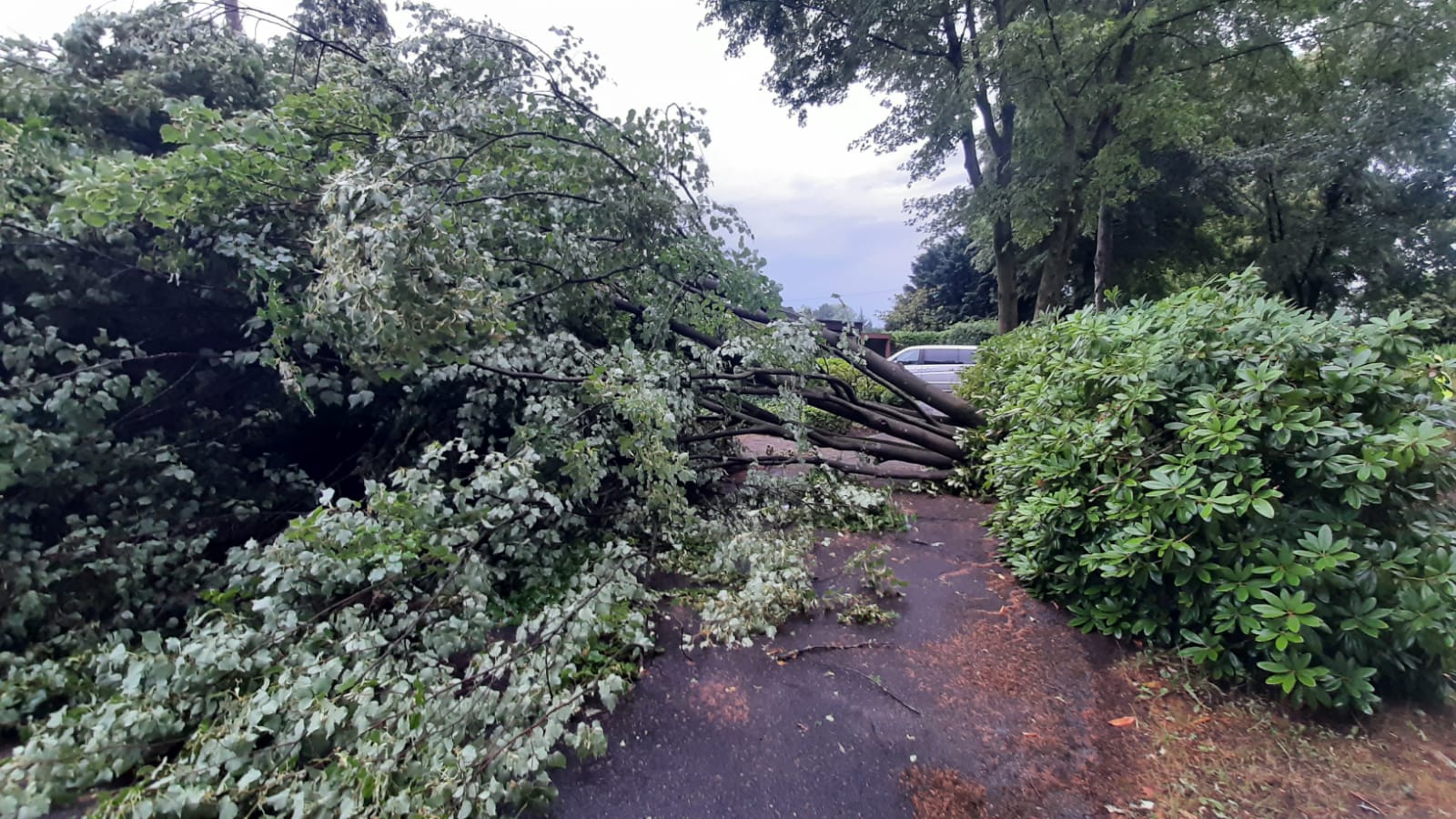 Bäume waren umgestürzt und einige abgebrochene Äste blockierten Straßen. Die Feuerwehr beseitigte die Gefahrenstellen und machte die Wege wieder frei. Gegen 20 Uhr beruhigte sich die Lage, es wurde noch einige Restarbeiten durchgeführt.