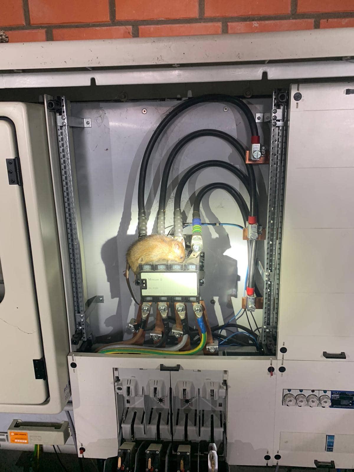 Der Angriffstrupp kontrollierte unter Atemschutz den Verteilerkasten und stellte fest, dass eine tote Ratte dort am Schmoren war. Die Feuerwehr entfernte das tote Tier. Die elektrische Anlage wurde durch Techniker überprüft und wieder frei gegeben.