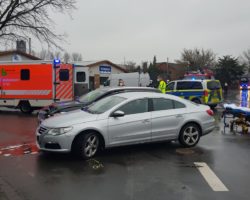 Beim Zusammenstoß zweier PKW im Kreuzungsbereich verletzten sich zwei Personen. Diese wurden vom Rettungsdienst versorgt, wobei eine Person mit dem Rettungswagen zum Krankenhaus transportiert wurde.