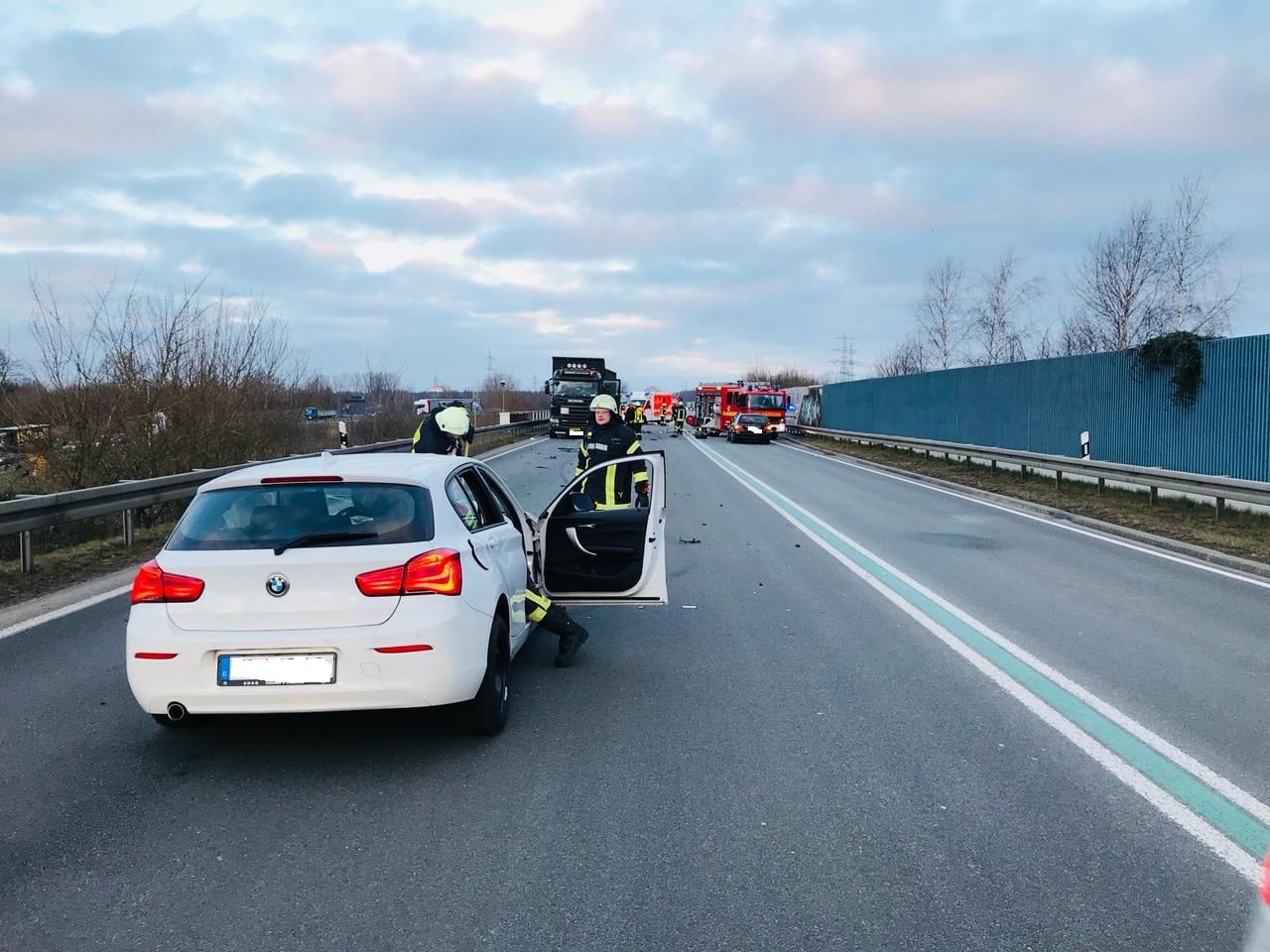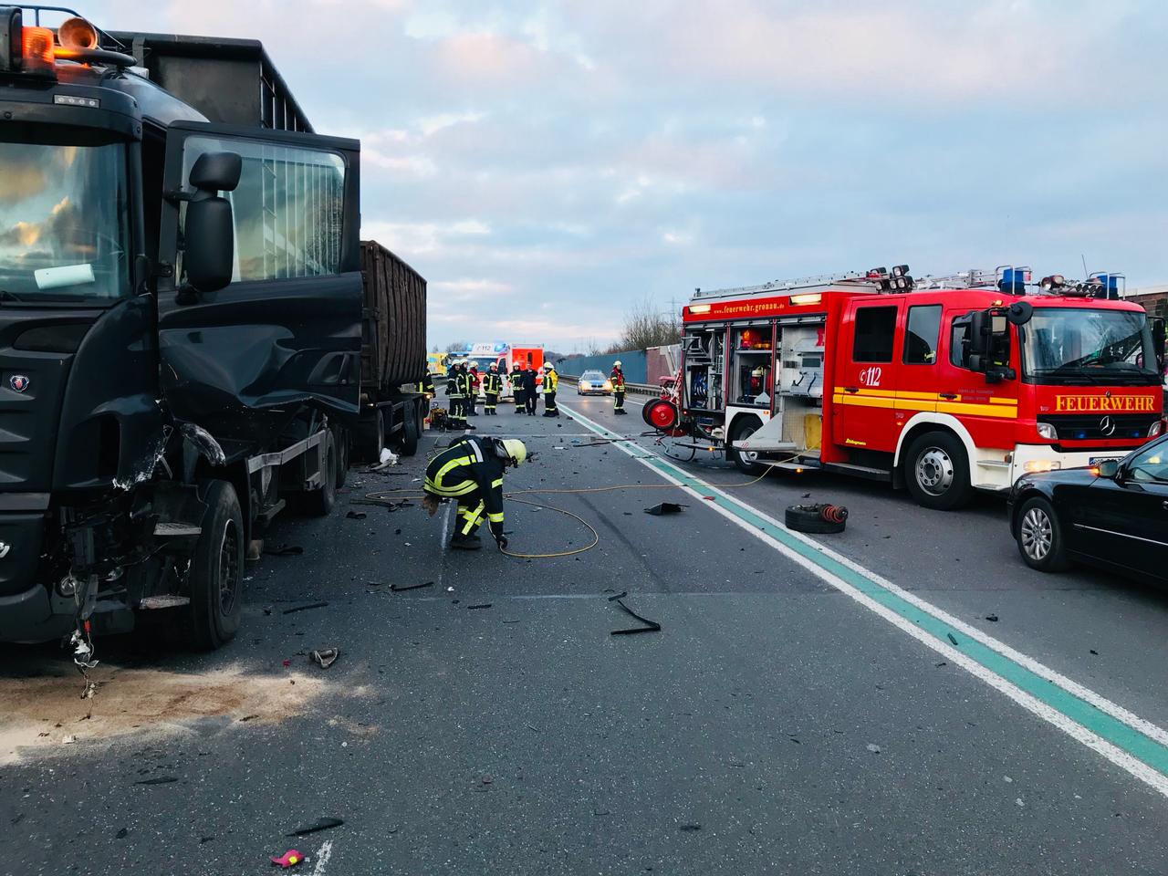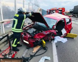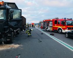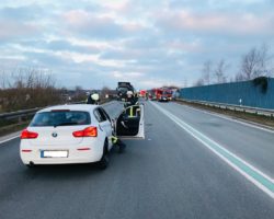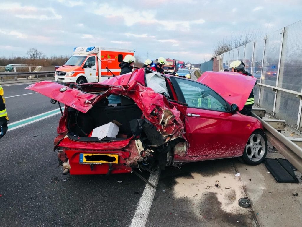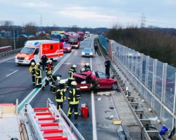 Gronau (ots) – (dm) Am Montagmorgen kam es auf der Bundesstraße 54 um 07.25 Uhr zu einem Verkehrsunfall, bei dem ein Mann (21, Nijverdal (NL)) und eine Frau (35, Gronau-Epe) leicht verletzt wurden. Nach ersten Erkenntnissen befuhr der 21-Jährige mit seinem Auto die Bundesstraße aus Richtung Ochtrup kommend in Richtung Niederlande. In Höhe der Überführung (L574; Gronauer Straße) geriet er aus noch nicht bekannten Gründen mit seinem Auto in den Gegenverkehr. In seiner Fahrtrichtung gab es hier einen, in entgegengesetzter Richtung zwei Fahrstreifen. Er stieß zunächst mit dem Auto der 35-Jährigen zusammen, welche auf dem ganz rechten Fahrstreifen unterwegs war. Danach schleuderte sein Fahrzeug gegen einen hinter dem Auto der Gronauerin befindlichen Lkw, bevor es schließlich stark deformiert zum Stillstand kam. Der Lkw-Fahrer (51, Nieuwleusen (NL)) blieb unverletzt. Der 21-Jährige musste durch Kräfte der Feuerwehr aus seinem Auto befreit werden. Sowohl er als auch die Gronauerin wurden durch den Zusammenstoß leicht verletzt. Rettungskräfte brachten die beiden in ein Krankenhaus. Alle drei beteiligten Fahrzeuge waren nicht mehr fahrbereit und wurden abgeschleppt. Es entstand ein geschätzter Schaden von über 40.000 Euro. Für die Dauer der Unfallaufnahme war die B54 komplett gesperrt.