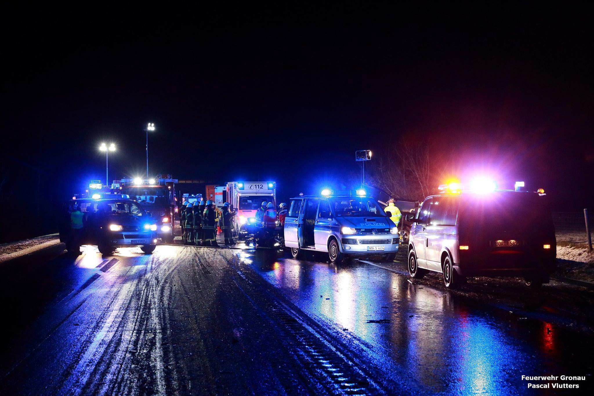 Gronau (ots) – Am 09.12.2017 gegen 19.20 Uhr befuhr ein 20jähriger Fahrzeugführer aus Münster die B54 von Gronau in Fahrtrichtung Ochtrup. Ungefähr 1 km vor dem Autobahnkreuz Gronau/Ochtrup (A31) kam er witterungsbedingt ins Schleudern und geriet in den Gegenverkehr. Dort prallte er mit dem Bulli eines 49jährigen Fahrzeugführers aus Paderborn zusammen. Der 49jährige Fahrer wurde leicht verletzt, sein 33jähriger Beifahrer aus Gütersloh blieb unverletzt. Ein weiterer Fahrzeuginsasse, ein 29jähriger aus Gütersloh, musste durch die Rettungskräfte aus dem Fond des Bullis herausgeschnitten werden und wurde schwer, aber nicht lebensgefährlich verletzt mit dem Rettungswagen ins Krankenhaus nach Enschede gebracht. Für die Dauer der Unfallaufnahme wurde die B54 in beide Fahrtrichtungen gesperrt.