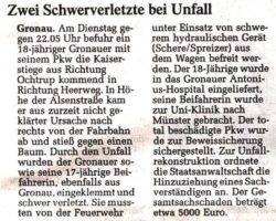 Hierbei prallte ein PKW gegen einen Baum und die beiden Insassen wurden im Fahrzeug eingeklemmt.