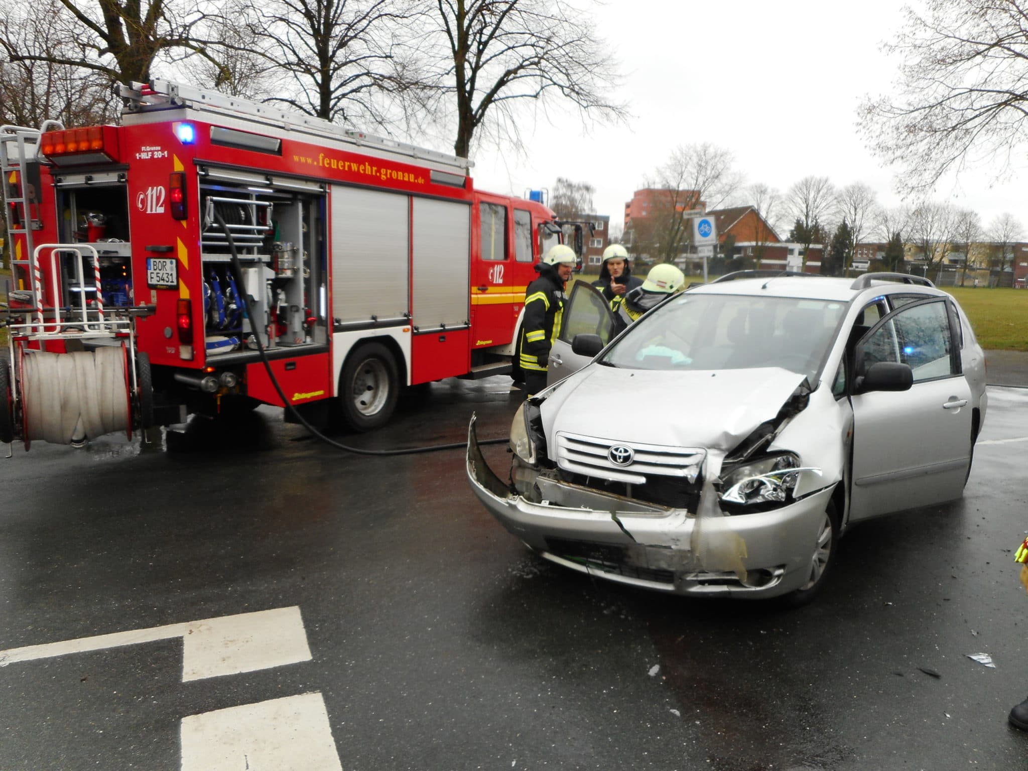 Leichte Verletzungen hat eine 44-jährige Pkw-Fahrerin bei einem Verkehrsunfall im Kreuzungsbereich Laubstiege/Friedensweg (Rechts-vor-Links-Regelung) erlitten. Nach ersten Angaben der Polizei an der Unfallstelle befuhr der rumänische Fahrer eines Toyota die Laubstiege – aus Richtung Vereinsstraße kommend – in Richtung Eper Straße. Im Kreuzungsbereich kam es zum Zusammenprall mit dem VW-Golf der 44-Jährigen, die den Friedensweg – aus Richtung Hermann-Ehlers-Straße kommend – in Richtung Friedhof befuhr und die Laubstiege überqueren wollte. Der Toyota prallte dabei auf die Fahrerseite des VW Golf. Durch die Wucht des Aufpralls wurde der Golf herumgeschleudert und kam erst in einer Grünanlage neben der Straße zum Stillstand. Weil es zunächst hieß, dass eines der Fahrzeug in Brand geraten sei, rückte die Feuerwehr mit mehreren Fahrzeugen an. Zum Glück gab es aber nur eine kleine Feuerentwicklung. An beiden Fahrzeugen entstand erhebliche Sachschaden, den die Polizei nach ersten Informationen auf rund 20 000 Euro schätzt.