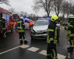Leichte Verletzungen hat eine 44-jährige Pkw-Fahrerin bei einem Verkehrsunfall im Kreuzungsbereich Laubstiege/Friedensweg (Rechts-vor-Links-Regelung) erlitten. Nach ersten Angaben der Polizei an der Unfallstelle befuhr der rumänische Fahrer eines Toyota die Laubstiege – aus Richtung Vereinsstraße kommend – in Richtung Eper Straße. Im Kreuzungsbereich kam es zum Zusammenprall mit dem VW-Golf der 44-Jährigen, die den Friedensweg – aus Richtung Hermann-Ehlers-Straße kommend – in Richtung Friedhof befuhr und die Laubstiege überqueren wollte. Der Toyota prallte dabei auf die Fahrerseite des VW Golf. Durch die Wucht des Aufpralls wurde der Golf herumgeschleudert und kam erst in einer Grünanlage neben der Straße zum Stillstand. Weil es zunächst hieß, dass eines der Fahrzeug in Brand geraten sei, rückte die Feuerwehr mit mehreren Fahrzeugen an. Zum Glück gab es aber nur eine kleine Feuerentwicklung. An beiden Fahrzeugen entstand erhebliche Sachschaden, den die Polizei nach ersten Informationen auf rund 20 000 Euro schätzt.