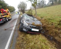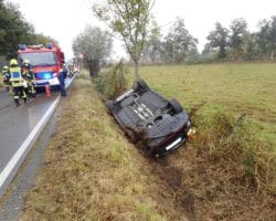 Die Feuerwehr Gronau wurde mit dem Stichwort, „VU P klemmt“ und der Information PKW liegt auf dem Dach, alarmiert. Bei Eintreffen an der Einsatzstelle war der betroffene Fahrer bereits von Ersthelfern aus dem PKW befreit und dem Rettungsdienst übergeben worden. Der PKW lag von Epe kommend auf der linken Seite im Graben. Die Feuerwehr sicherte die Einsatzstelle und stellte den Brandschutz sicher. Da keine Sicherheit bestand, ob sich unter dem Fahrzeug aufgelaufene Betriebsstoffe befanden, blieb die Feuerwehr bis zur Bergung des PKW an der Einsatzstelle.