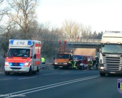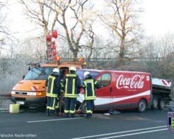 Gegen 09:00 Uhr ereignete sich auf der B 54 in Fahrtrichtung Münster ein Verkehrsunfall. Zwischen den Anschlussstellen Gronau-Ost und A 31 war ein Kleintransporter in ein Fahrzeug der Straßenmeisterei gefahren. Bei Einsätzen auf der B54 rückt von der Feuer-und Rettungswache ein Löschfahrzeug( HLF 20/16) zu Eigenabsicherung der Rettungsdienstkräfte mit aus. Bei diesem Verkehrsunfall mussten nicht nur die eigenen Kräfte abgesichert werden,sondern es wurden noch auslaufende Betriebsstoffe der verunfallten Autos aufgenommen. Eine verletzte Person wurde vom Rettungswagen ins Krankenhaus transportiert.
