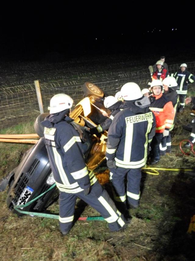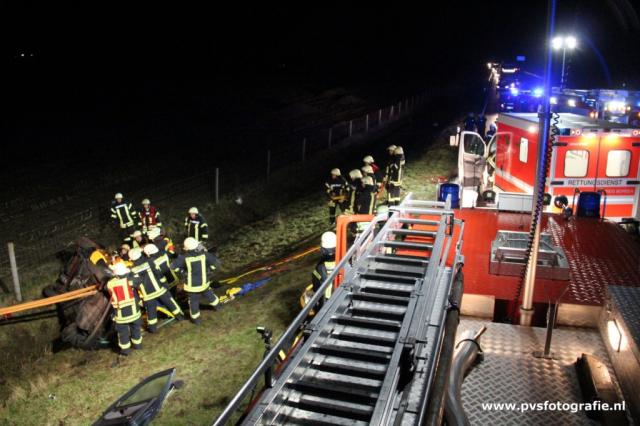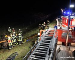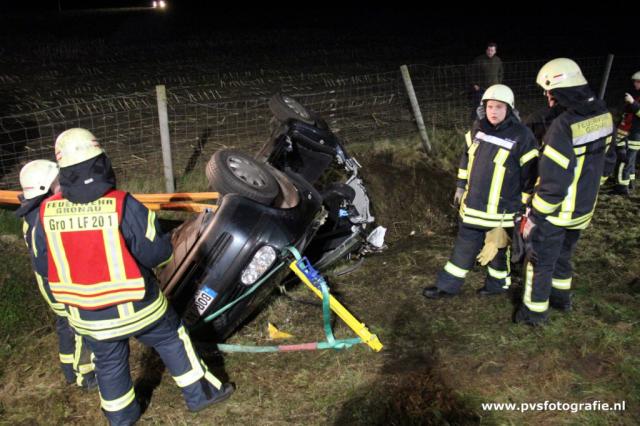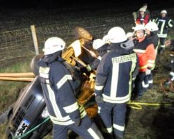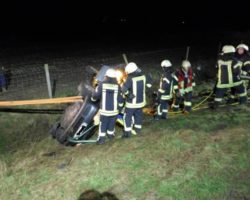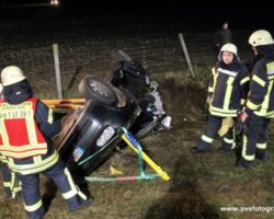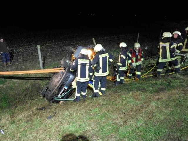 Ein VW Golf war auf der B 54, von Ochtrup kommend in Fahrtrichtung Gronau, von der Fahrbahn abgekommen, hatte sich überschlagen und war im Graben auf dem Dach liegen geblieben. Der Fahrer des Fahrzeuges konnte sich selbst befreien. Die Beifahrerin lag im hinteren Teil des Fahrzeuges auf dem Dach. Nach der esten Erkundung war die Person nicht eingeklemmt. In Absprache mit dem Notarzt wurde dann aber eine schonende Rettung mittels hydraulischem Rettungsgerät durchgeführt. Die verletzte Patientin wurde anschließend zum Medispectrum nach Enschede befördert. Der Fahrer des Wagens kam mit leichten Verletzungen ins Gronauer Krankenhaus.