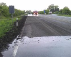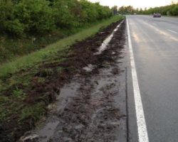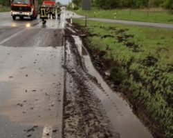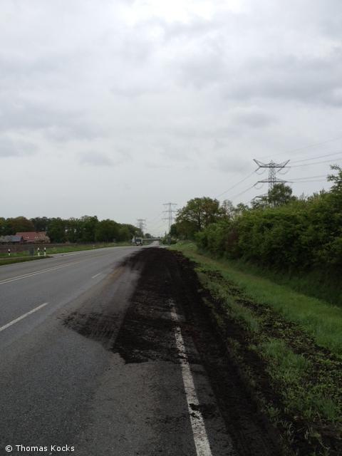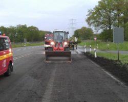 Am Montagabend wurde die Feuerwehr von der Polizei um Unterstützung gebeten. Auf der B54 in Fahrtrichtung Münster in höhe des Rastplatzes war ein LKw von der Fahrbahn abgekommen und in den Seitenstreifen geraten. Der LKW hatte dadurch soviel Erdreich auf die Fahrbahn getragen das auf einer Länge von 150m die Straße gereinigt werden musste. Durch guten Kontakt zu der Fa. Hagebau Frieling im Ort konnte zum Abschieben des Erdreichs von der Fahrbahn der Radlader der Firma genutzt werden. Im Anschluss wurde die Fahrbahn mit Wasser gereinigt.