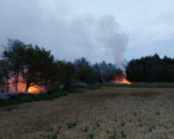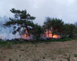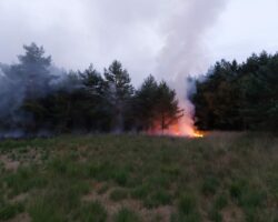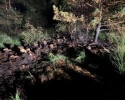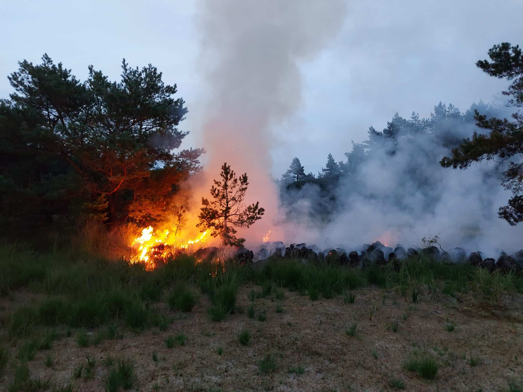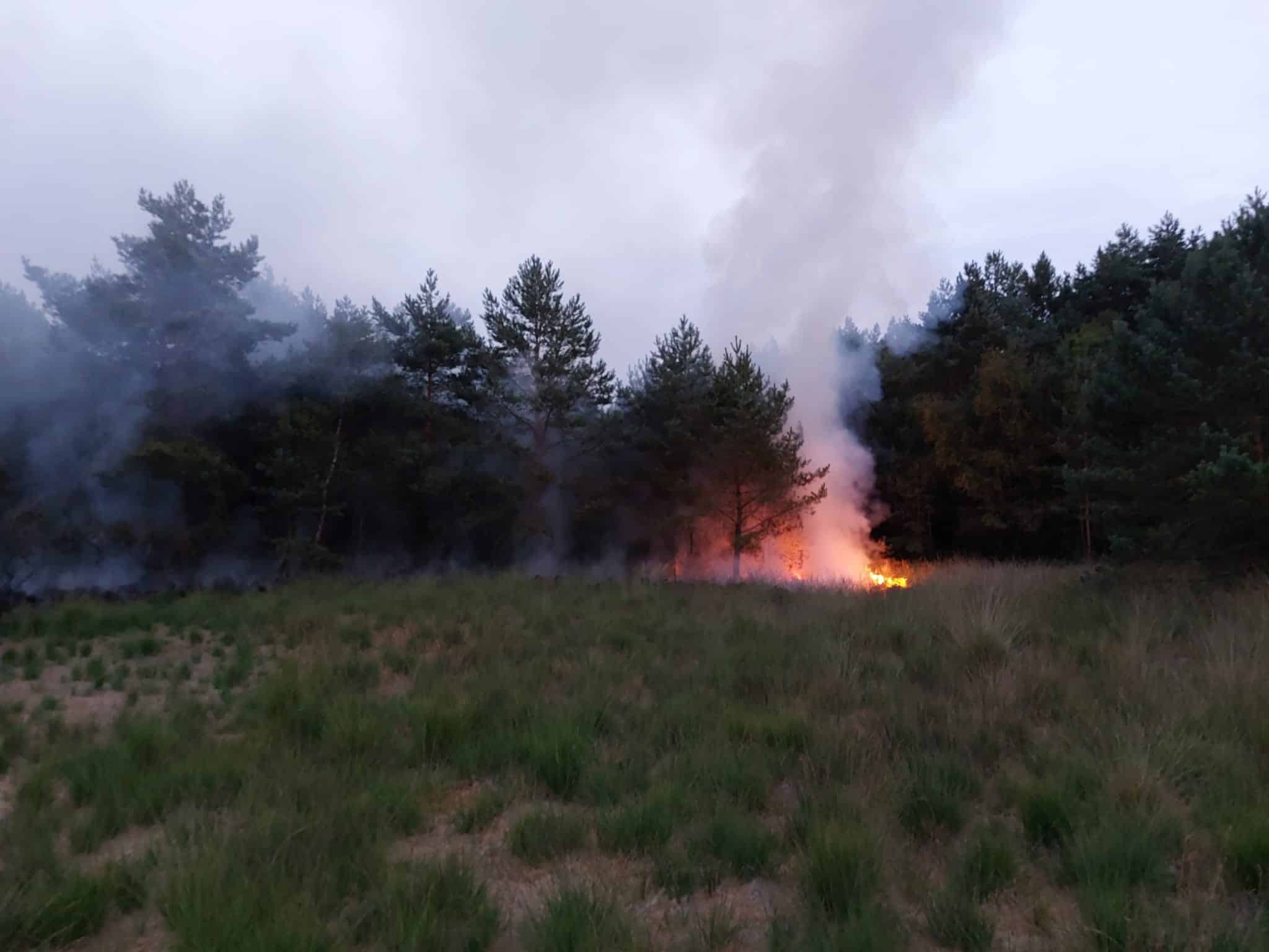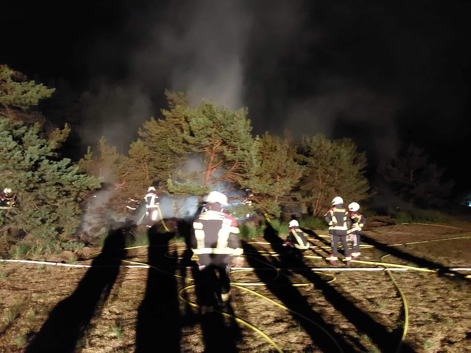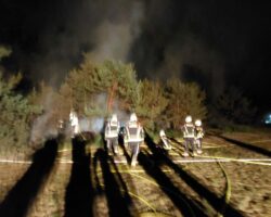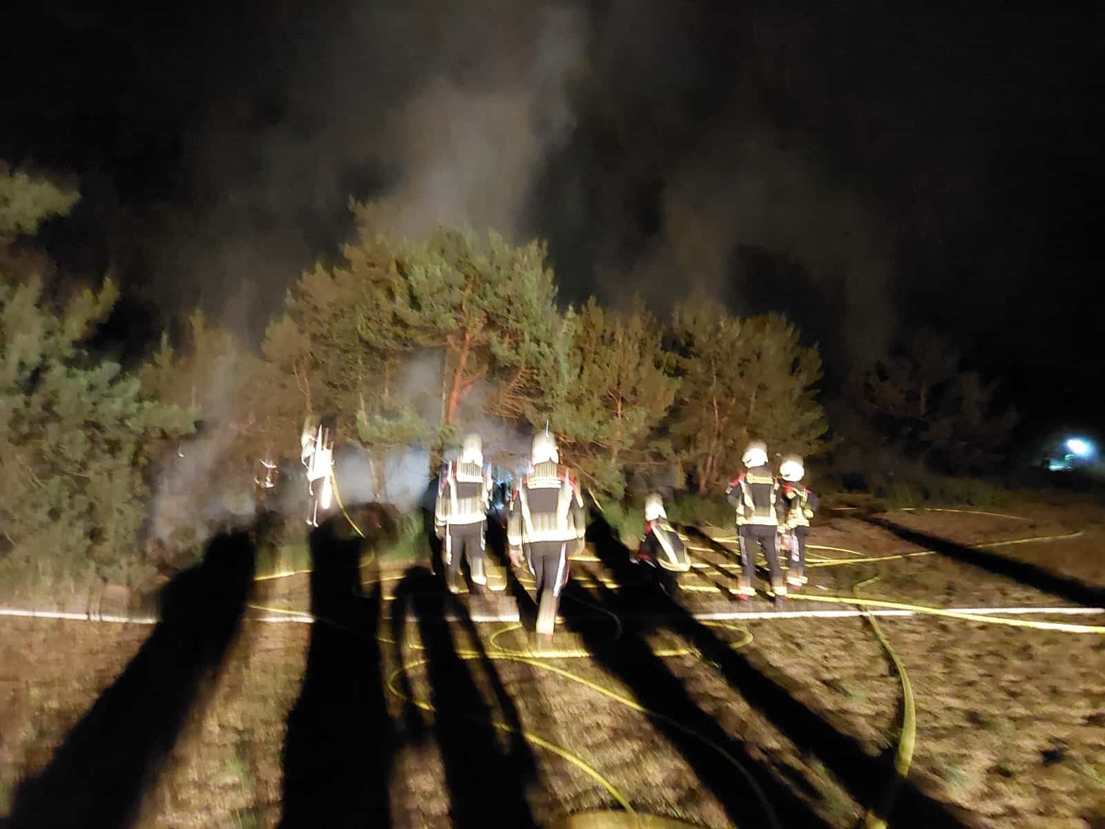 Zunächst konnte die Einsatzstelle im Wald nicht gefunden werden. Mit Hilfe unserer Drohne und der Wärmebildkamera konnte dann die Einsatzstelle lokalisiert werden. Diese befand sich auf Gildehauser Gebiet (Niedersachsen), so dass die Feuerwehr Bad Bentheim-Gildehaus alarmiert wurde. Die Größe der Einsatzstelle betrug ca. 3000 m².