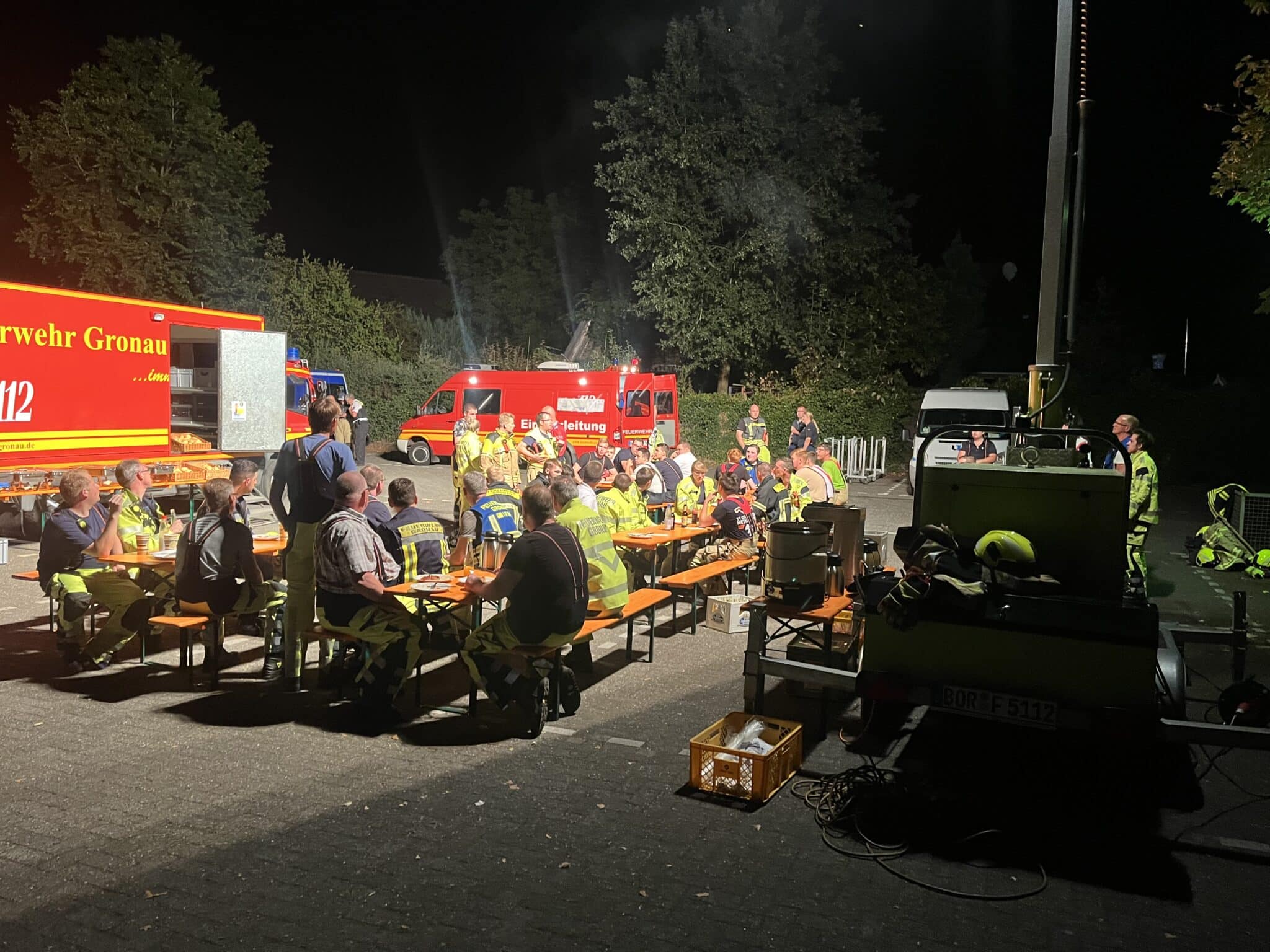 Da der Einsatz bis in die Nacht dauerte, hatten viele Einsatzkräfte bereits mit Ihren Arbeitgebern Kontakt aufgenommen, um eine bestmögliche Regelung für Ihren Arbeitsbeginn am Montag zu erzielen. Hierfür möchten wir uns bei allen Arbeitgebern herzlich bedanken.