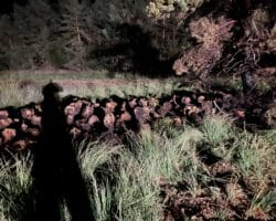 Die Anfahrt in das Waldgebiet gestaltete sich mit Großfahrzeugen in der Dunkelheit schwierig, da nur enge Waldwege zur Einsatzstelle führten.