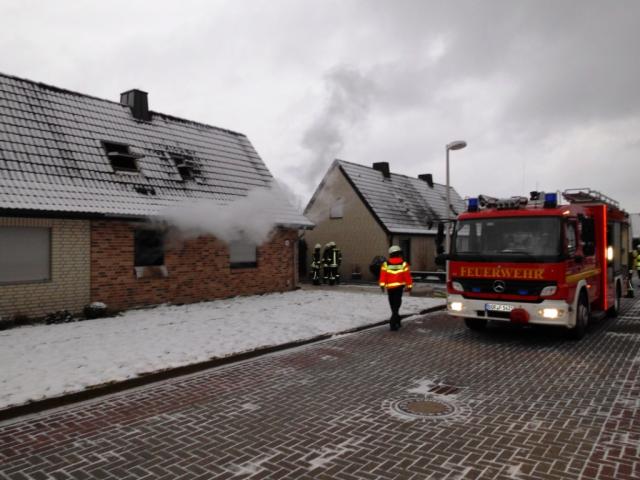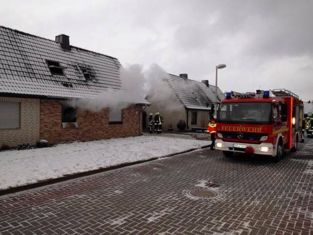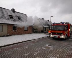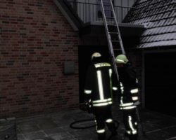 Gegen 06:45 h wurder díe Feuerwehr Gronau zu einem Wohnungsbrand gerufen. Da nicht genau bekannt war, ob sich noch Personen in der Doppelhaushälfte befanden, wurde MIG-Alarm ausgelöst. Aus den Fenstern quoll bei Ankunft bereits dichter Rauch. Mittels Werkzeug wurde dann eine Öffnung geschaffen, um ins Gebäude zu kommen. Im Erdgeschoss brannte die Küche in voller Ausdehnung. Zwei Trupps unter Atemschutz konnten dann schnell den Brand  mit einem C-Rohr löschen. Das Gebäude wurde mit dem Hochleistungslüfter rauchfrei gemacht. Bei der Kontrolle der Wohnung wurden zwei tote Katzen geborgen.