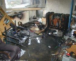 An der Einsatzstelle bot sich folgendes Bild: Die Eingangstür zum 2 1/2 geschossigem Wohnhaus war geöffnet sowie alle Fenster des Treppenhauses. Es war Brandgeruch zu vernehmen aber kein Rauch zu sehen. Die anwesenden Bewohner wurden ins Freie geführt. Eine verschlossene Wohnung im Dachgeschoss konnte durch mitgeführtes Werkzeug geöffnet werden. Die Wohnung wurde mittels Wärmebildkamera erfolglos abgesucht. Im 2. OG war ebenfalls eine Wohnung verschlossen. Aufgrund eines geringen Temperaturunterschiedes (sichtbar mit der Wärmebildkamera) an der Wohnungseingangstür wurde diese ebenfalls geöffnet. Hier kam sofort schwarzer Rauch entgegen. Diese Wohnung wurde von 2 Trupps unter PA nach Personen abgesucht. Der Brand im Wohnzimmer (Fernseher und Sessel) konnte mit einem C-Rohr gelöscht werden. Die gesamte Wohnung wurde durch Rauch und Wärmeentwicklung in Mitleidenschaft gezogen. Zur Ermittlung der Brandursache wurde die Kripo eingeschaltet. Der Sachschaden wird mit ca. 15.000 € angegeben.