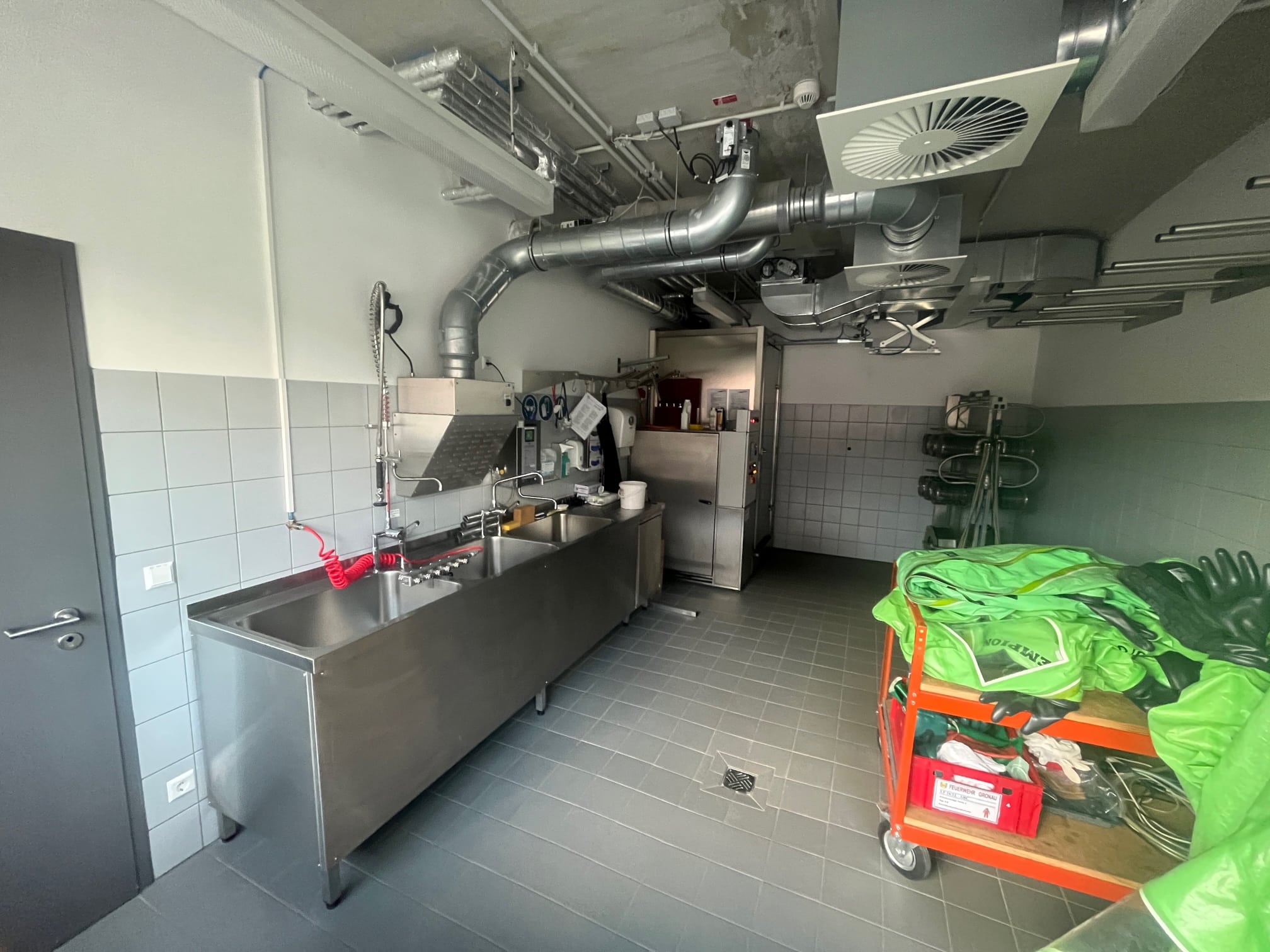 Eingesetzte und verunreinigte Atemschutzgeräte gelangen für die strikte schwarz/weiss-Trennung nur über diese Tür in die Atemschutzwerkstatt. In außenliegenden Schränken können Geräte ggfs. zwischengelagert werden.
