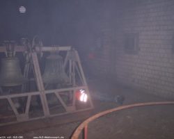Bei Wartungsarbeiten des Küsters an der Glockenanlage, kam es zu einem elektrischen Kurzschluss und im Anschluss zu einer schnellen Brandausbreitung. Der Küster konnte noch selbst die Feuerwehr alarmieren, aber sich nicht mehr selbst aus dem Glockenturm befreien, da die Rauchentwicklung ziemlich stark und somit die Sicht gleich null war.
