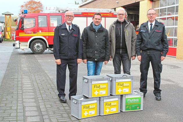 Der Klimawandel ist in aller Munde. Starke Regenfälle mit vollgelaufenen Kellern treffen immer mehr Städte und Gemeinden. Die Provinzial als Versicherer hat im Mai diesen Jahres an alle Feuerwehren in NRW je eine Flutbox zur Verfügung gestellt. Diese Flutbox soll im Schadenfall den Bürgern beim Auspumpen eines Kellers Erste Hilfe leisten. In der Flutbox befindet sich eine leistungsfähige Tauchpumpe, ein Feuerwehrschlauch sowie ein Personenschutzschalter. Die Tauchpumpe ist in der Flutbox fest arretiert und kann sofort eingesetzt werden.