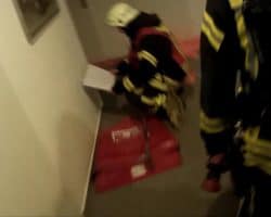 Mit den vorhandenen Objektplänen konnte sich der Einsatzleiter einen Überblick mit den Räumlichkeiten verschaffen. Die vorgehenden Angriffstrupps fanden bereits 2 Personen im Treppenraum, die von dort schnell in die eingerichtete Verletztensammelstelle gebracht wurden. Die vorgehenden Trupps setzten einen Rauchvorhang ein, um die Rauchausbreitung zu verhindern und suchten die Zimmer und Flure nach den weiteren vermissten Personen ab. Gefundene Personen wurden an der Rauchgrenze anderen Trupps zum Transport durch das Treppenhaus übergeben. Hierbei wurden auch Wärmebildkameras eingesetzt.