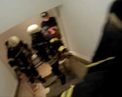 Angenommen wurde ein ausgebrochenes Feuer im Obergeschoss, das die vorhandene Brandmeldeanlage tatsächlich automatisch ausgelöst hatte. Bei Eintreffen der Feuerwehr hatten die meisten Bewohner bereits selbständig das Gebäude verlassen. Es wurden allerdings 6 Personen vermisst.