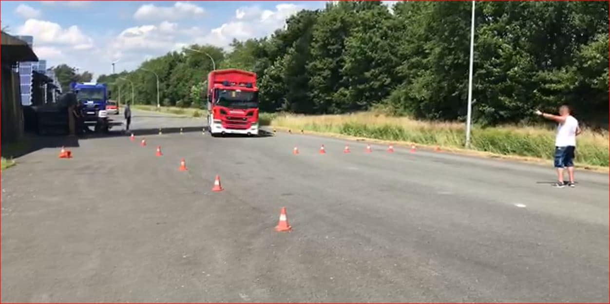 Durch Slalomfahren konnte die Fahrstabilität bei unterschiedlichen Geschwindigkeiten verglichen werden. Das Fahrverhalten eines älteren Fahrzeuges beeindruckte ebenso wie das eines erst 6 Monate altem Scania-Wechsellader, wo sich das elektronische Stabilitätsprogramm aktivierte und für Sicherheit sorgte.