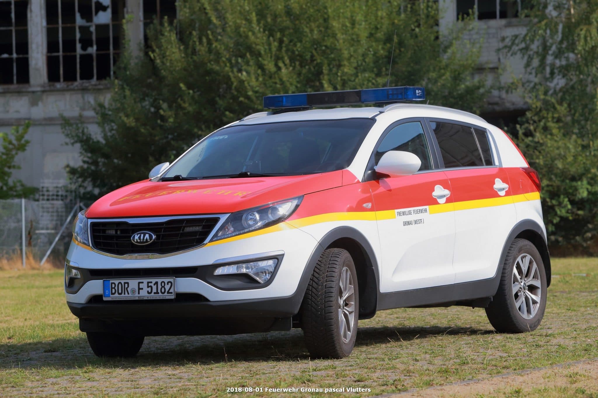 PKW Bereitschaftsdienst 2 Fahrzeuginformationen Baujahr: 2015 Fabrikat & Typ: KIA Sportage Funkrufname: FW GRO 1 PKW 2 Kennzeichen: BOR-F-5182 Sitzplätze: 5 Bereitschaftsdienstfahrzeug