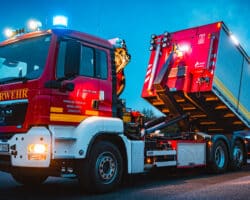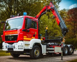 Wechselladerfahrzeug mit Kran Fahrzeuginformationen Baujahr: 2009 Funkrufname: FW GRO 2 WLF26-KR 1 Kennzeichen: BOR F 5662 Sitzplätze: 3 FM(SB) Wechselladerfahrzeug mit Kran