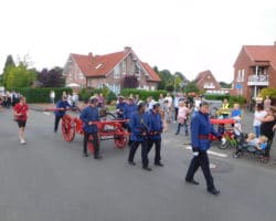 Die Feuerwehr Gronau nahm natürlich mit beiden Löschzügen teil. Highlight war die Feuerwehr-Handdruckspritze von 1881, die von den Kameraden in historischen Uniformen gezogen wurde.