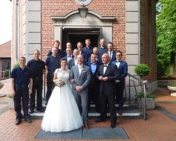 Christian Scheidle ist hauptamtlicher Mitarbeiter an der Feuer- und Rettungswache Gronau. Am Samstag, den 18. Mai 2019, trat Christian mit seiner Frau Aileen vor dem Traualtar in der Ahler Kapelle. Die Feuerwehr Gronau ließ es sich nicht nehmen, dem Brautpaar mit einem Spalier den Glückwunsch auszudrücken.